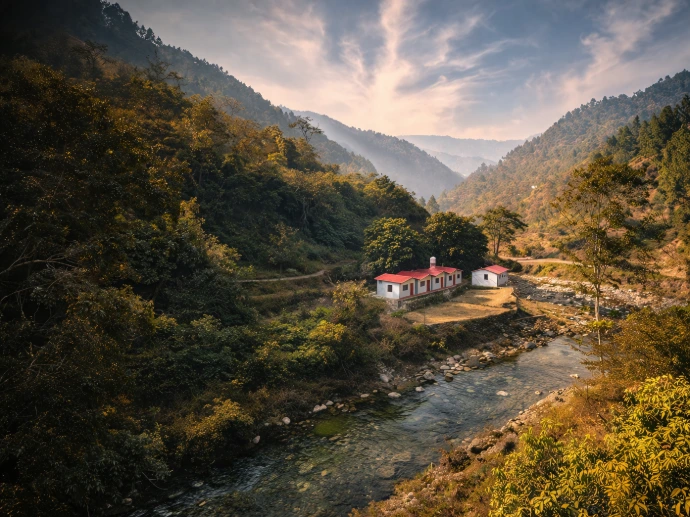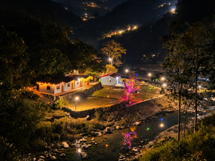 Tucked away in the serene hills of Uttarakhand, right beside a gently flowing river, our space is designed around the beauty of nature — fresh mountain air, breathtaking views, and a peaceful atmosphere that instantly calms the mind.